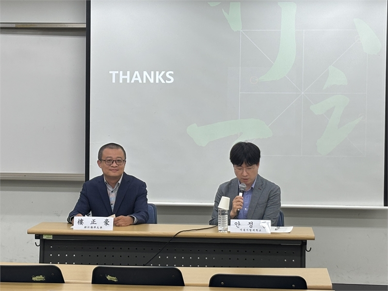 루정호 교수(절강해양대)와 토론하는 안정준 교수(서울시립대)