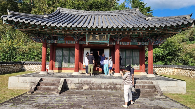충의사를 참배하고 충의공과 북관대첩 설명을 듣고 있다.