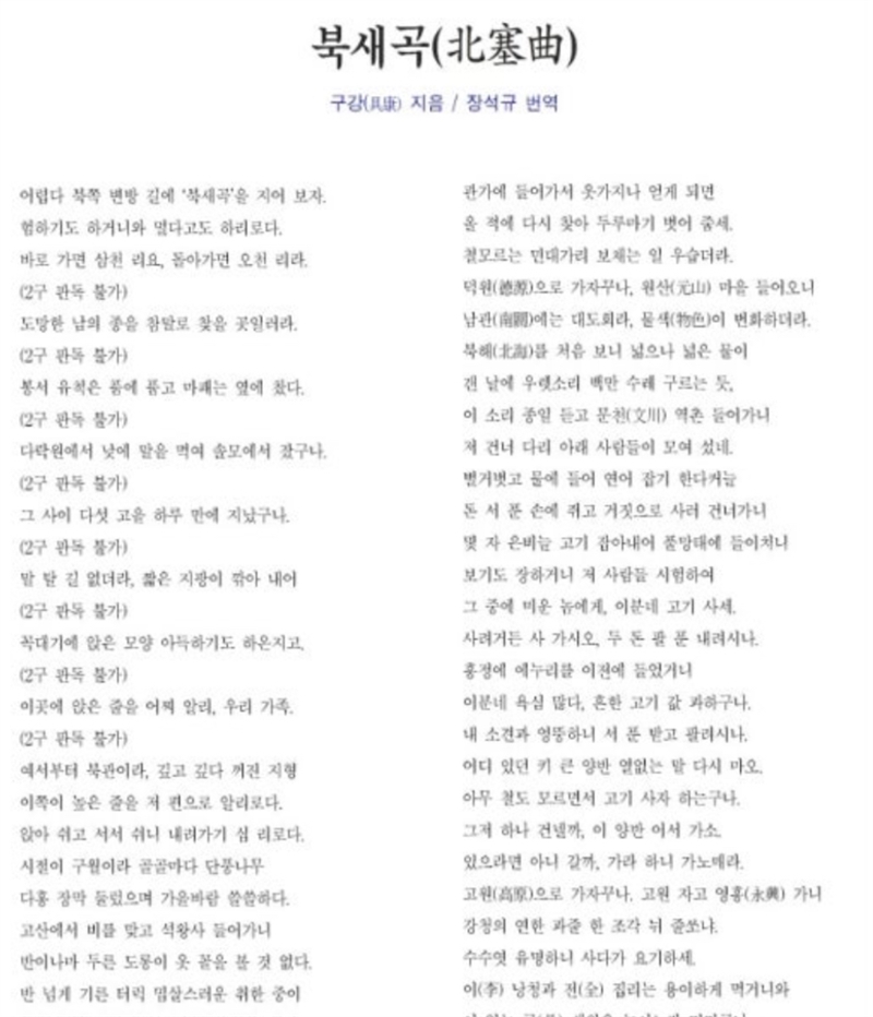 ’구강’ 은 1812년 56세의 나이로 암행어사에 임명되어 함경도 북관을 순찰하여 민정을 기록한다.