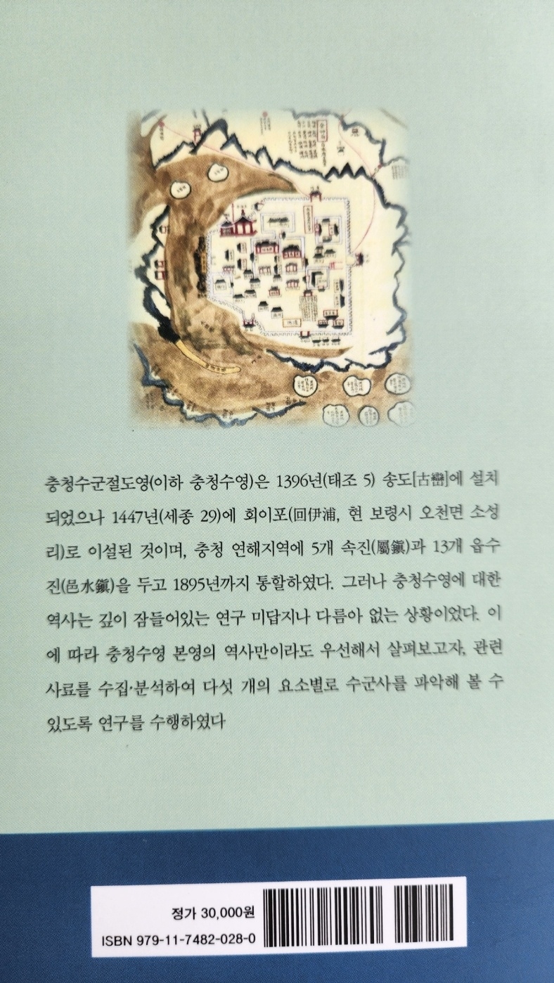 이 책은 조선시대 충청도 해역을 관할하던 충청수영(忠淸水營)의 역사와 조직 체계를 심층 분석한 연구서로,