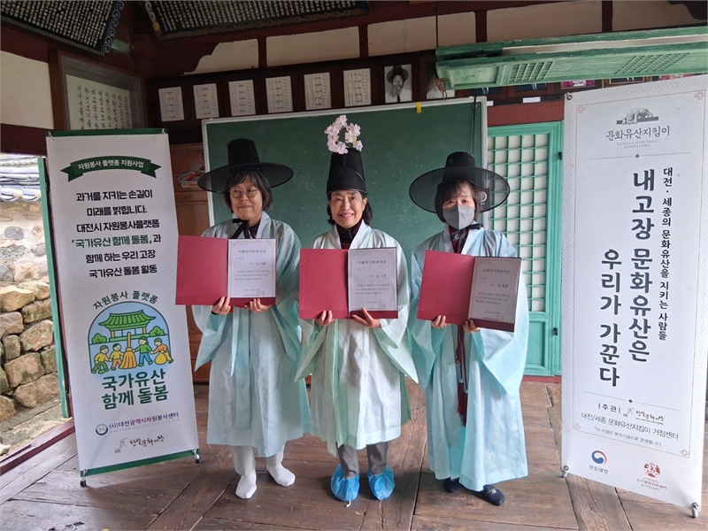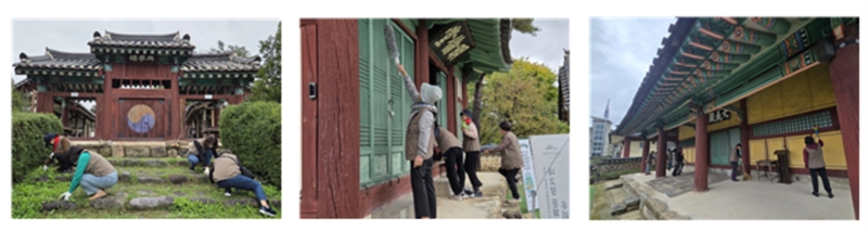 대전과 세종 지역의 국가유산지킴이 단체와 회원들이 연합하여 10.18(토) 오전 10시부터 12시까지 진잠향교에서 ‘내 고장 국가유산 가꾸는 날’ 활동을 전개하였다. 이 날 행사에는 한밭문화마당, 고령화사회를이롭게하는여성모임, 관저마을역사관, 대전시 가족봉사단, 자원봉사플랫폼 국가유산함께돌봄 등 지역에서 활동하는 국가유산지킴이 활동단체 5개 단체의 회원과 활동가 33명이 참여하였다.