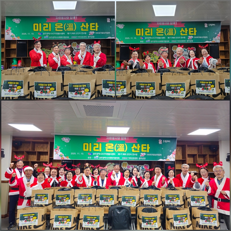 광주광역시 서구자원봉사센터가 주최한 '미리 온(溫) 산타' 나눔 행사에 기아국가유산지킴이 회원들이 적극 참여하여 지역 사회에 따뜻한 온기를 더했다. 중학교 진학을 앞둔 지역 취약계층 아동 35명에게 희망과 응원의 메시지를 전달하기 위해 기획된 이번 행사는, 2025년 11월 10일(월) 창작 농성골 커뮤니티센터에서 열렸다.