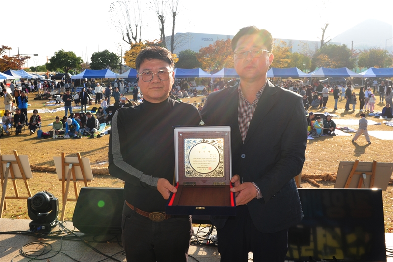 감사패를 수상한 해륙뉴스1 유경열 대표(좌), 김대성 추진위원장(우)