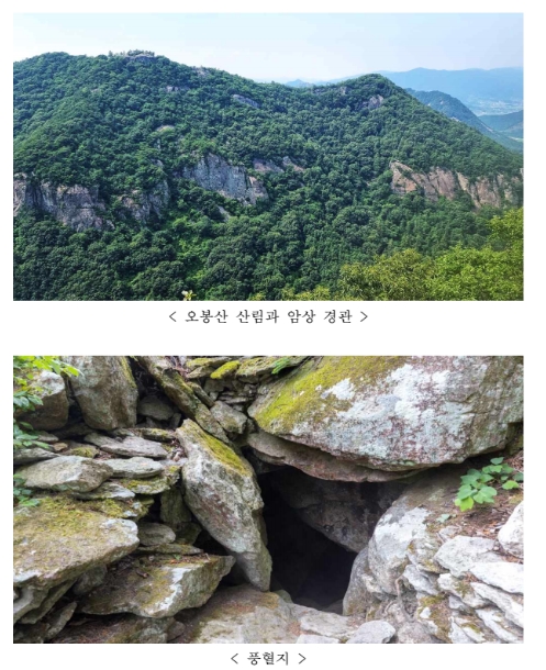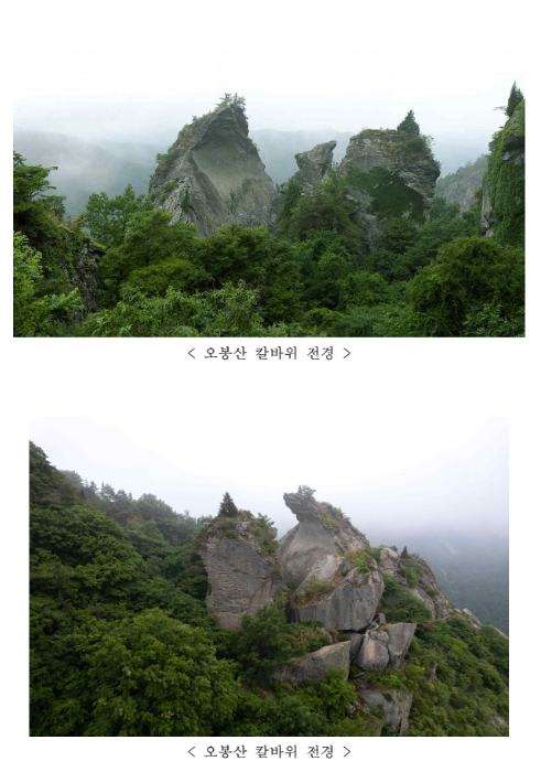「보성 오봉산 용추동과 칼바위 일원」은 신증동국여지승람, 동국여지지 등 여러 지리지와 문집에 오봉산의 위치와 함께 이 일원이 예로부터 경승지였음을 알 수 있는 기록이 남아 있으며, 등산로를 따라 풍혈지(風穴地), 칼바위 등의 기암 경관, 정상에서 조망되는 남해안 득량만의 해안 풍광, 용추동 계곡의 용추폭포와 울창한 숲이 아름다운 경관을 연출한다.