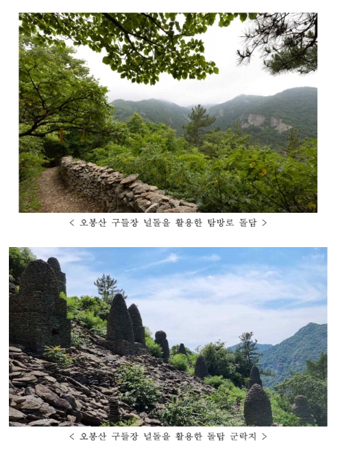 오봉산 일대에는 칼바위에 새겨진 마애불상과 개흥사지 등 불교 신앙 유적이 전해지며, 여제 봉행 기록이 남아있는 등 종교적·민속적 가치가 있다. 이외에도, 이 일대는 우리나라 온돌문화의 핵심 재료인 구들장을 채취하던 곳으로, 채석지와 구들장을 운반했던 우마차길 등이 잘 보존되어 있어 자연과 문화적 요소 이외에도 산업적 가치가 어우러진 복합유산이다.