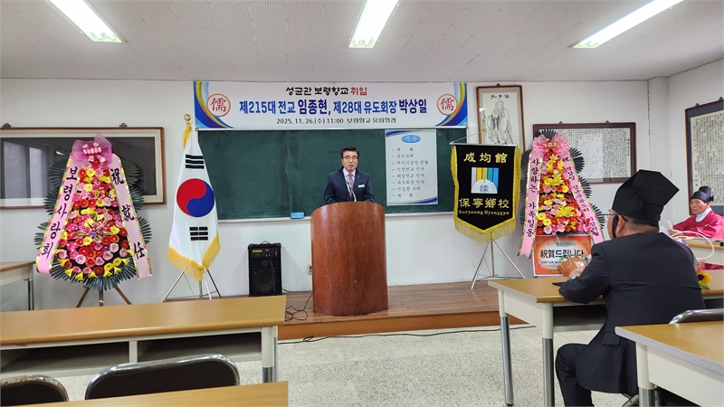행사는 개회를 시작으로 문묘배향, 재직기념장 전달, 직전 전교 인사, 취임사, 축사, 신임장 수여, 폐회 순으로 엄숙하고 품격 있게 진행돼 보령 유교문화의 깊이를 다시 한 번 확인하는 자리였다.